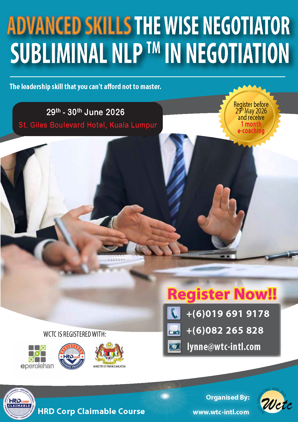 Advanced Skills The Wise Negotiator: Subliminal NLP™ in Negotiation (29-30 June 2026) St. Giles Boulevard Hotel, Kuala Lumpur