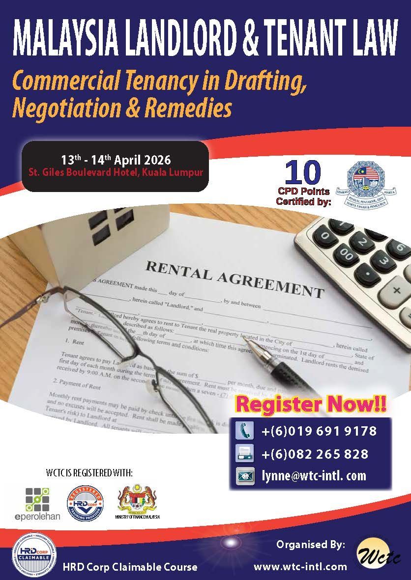 This program solves that by breaking down the key pillars of Malaysian land and tenancy law in clear, practical terms. Participants will learn how the National Land Code (NLC) affects commercial leases, what rights and liabilities both parties hold, and how to draft terms that genuinely protect their organisation.